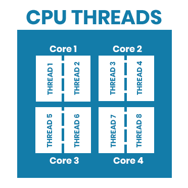 이것을 크게 네가지로 나눈다. 코어(Core), 쓰레드(Thread), 클럭(Clock) 그리고 캐쉬(Cache) 이다.