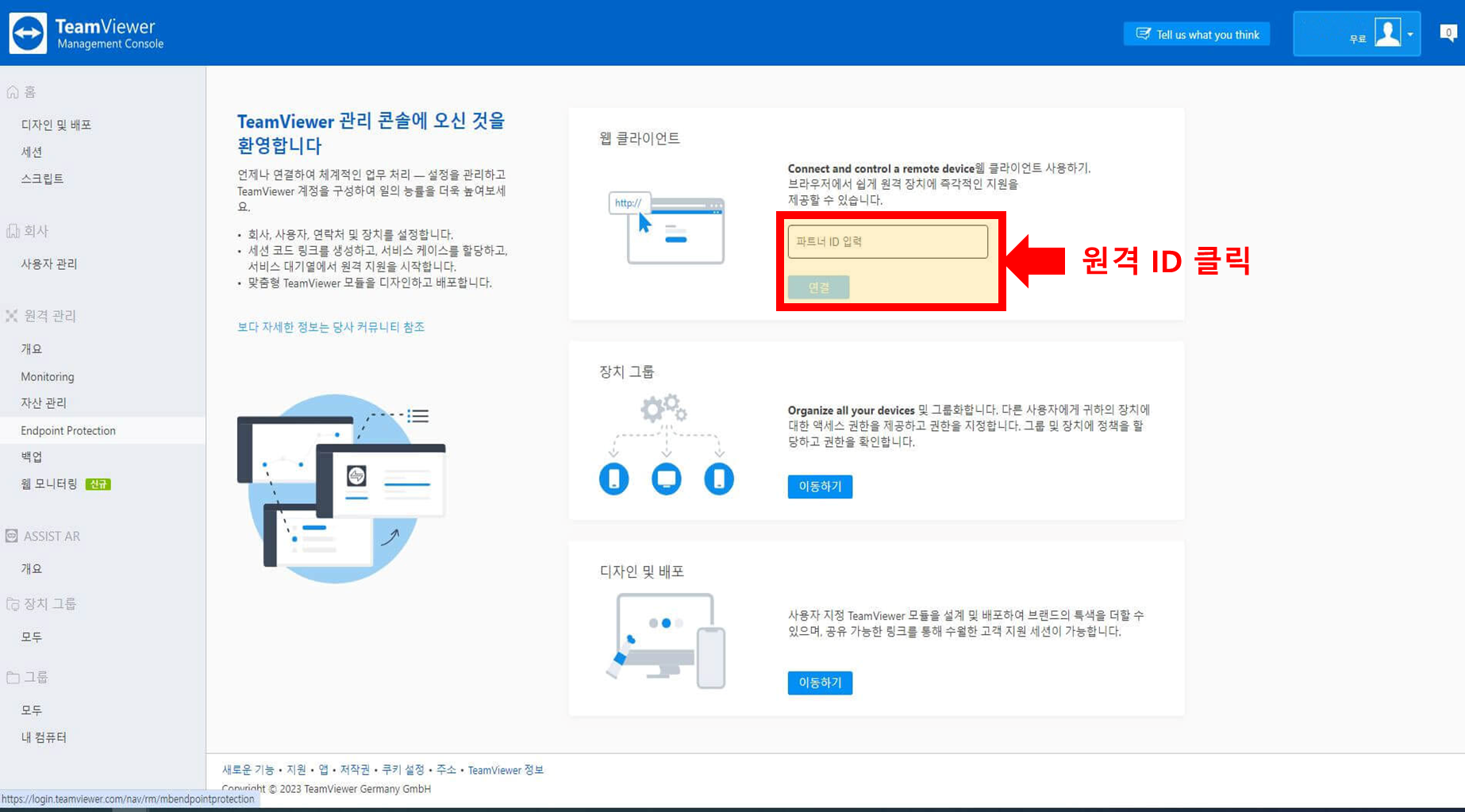 팀뷰어를 실행 중인 기기는 웹 브라우저로 접근할 수 있다