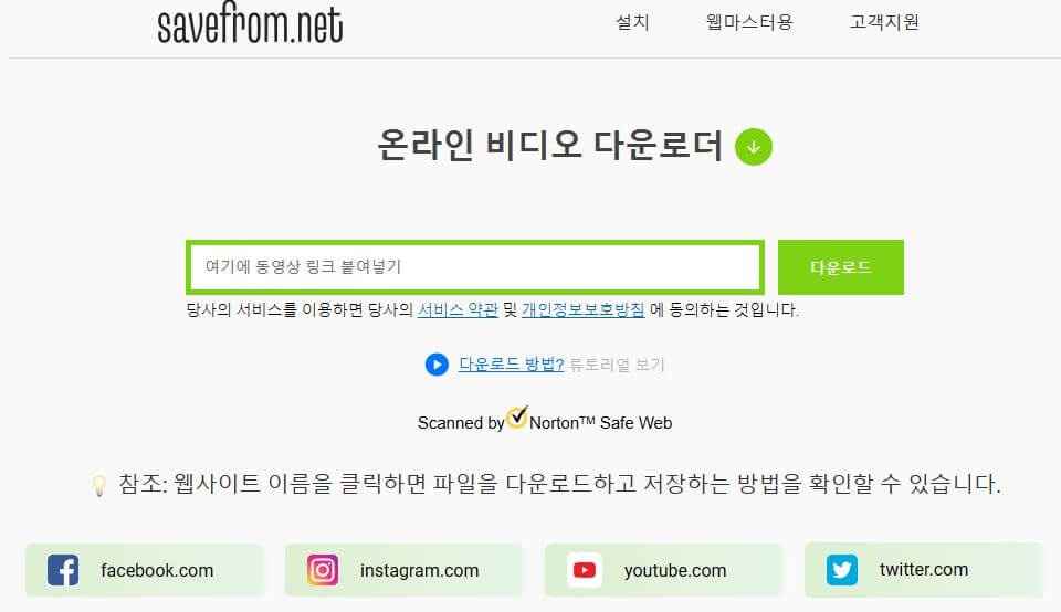 https://ko.savefrom.net 웹사이트 에서 다운로드
