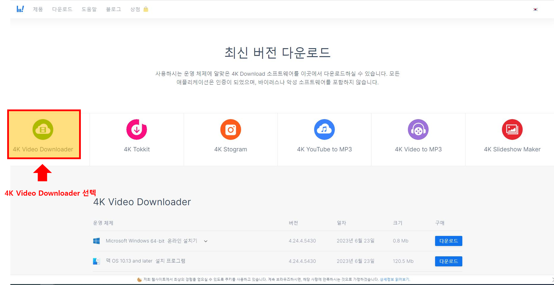 1. 4K Downloader 홈페이지 에서 프로그램 다운로드 방법