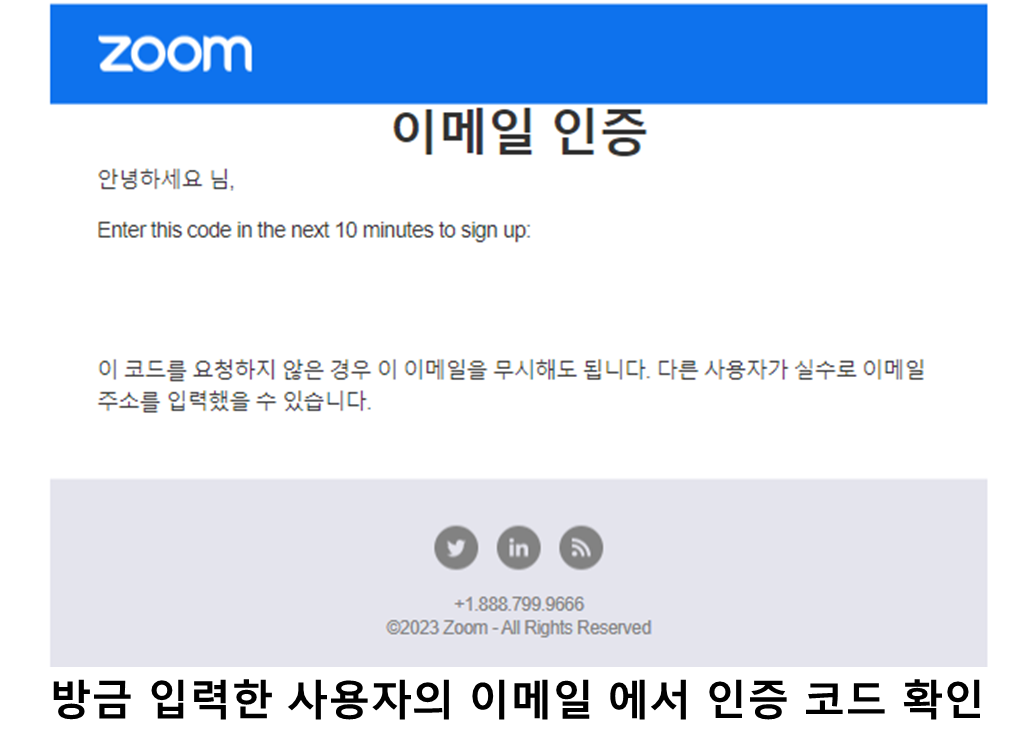 👉 ZOOM 신규 가입 이메일 인증 코드 입력