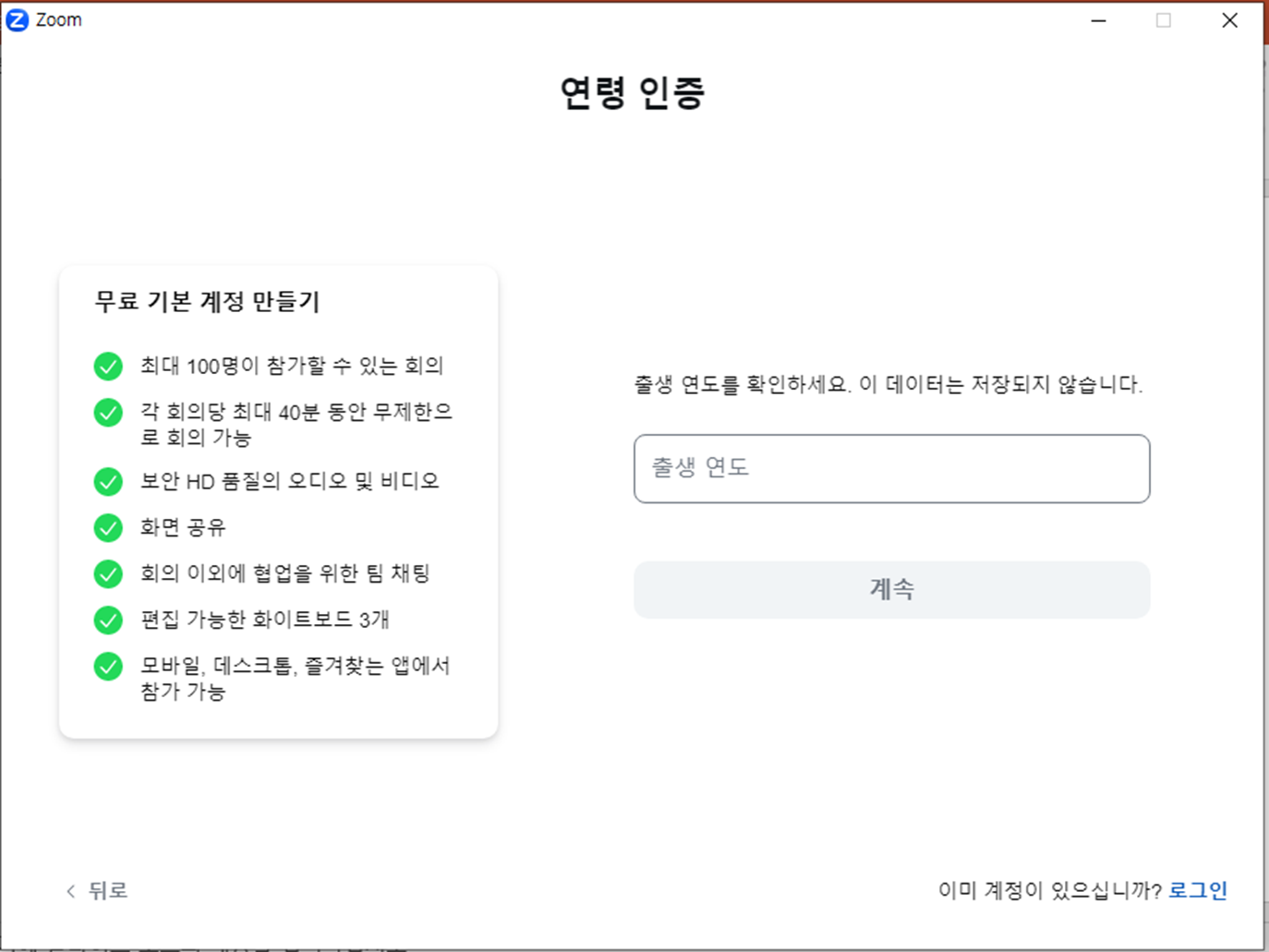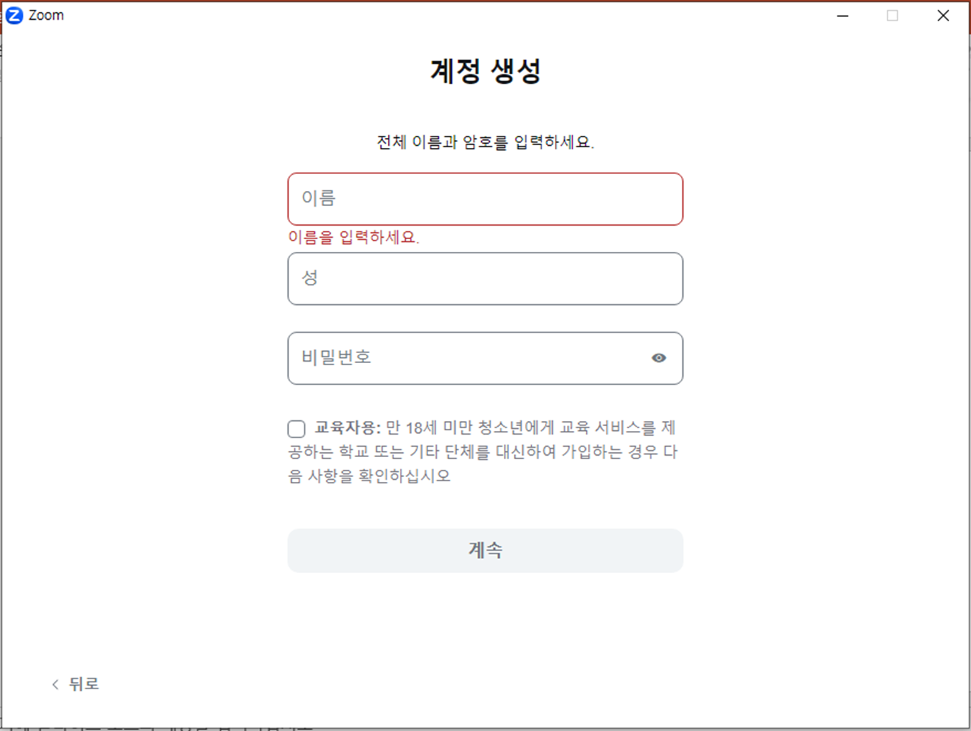 👉 ZOOM 신규 가입 연령 기입