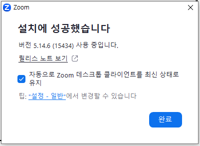 👉 ZOOM 프로그램 설치 완료 화면