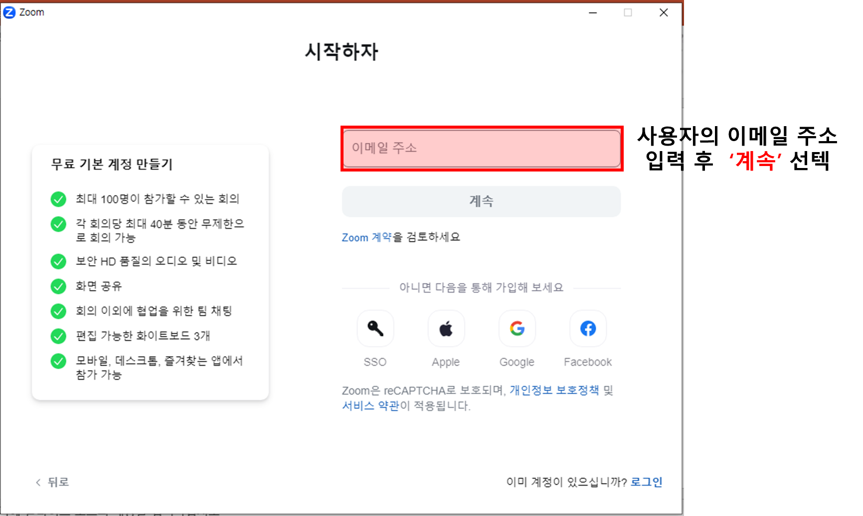 👉 ZOOM 신규 가입 이메일 주소 입력