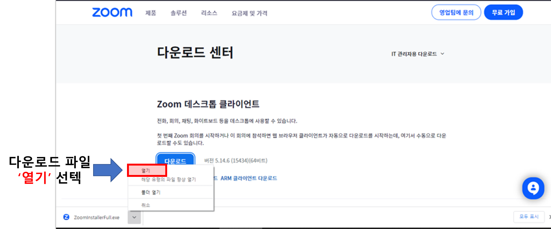 👉 ZOOM 프로그램 다운로드 화면