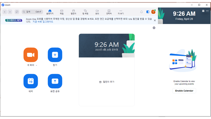 👉 ZOOM 설치 실행 메인 화면
