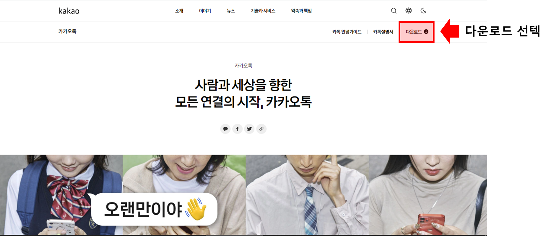 1️⃣ 홈페이지 화면에서 다운로드 선텍
