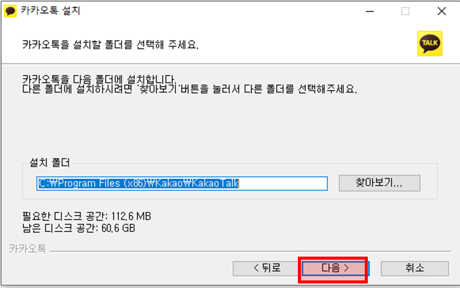 5️⃣ 카카오톡 PC버전 파일 설치 화면