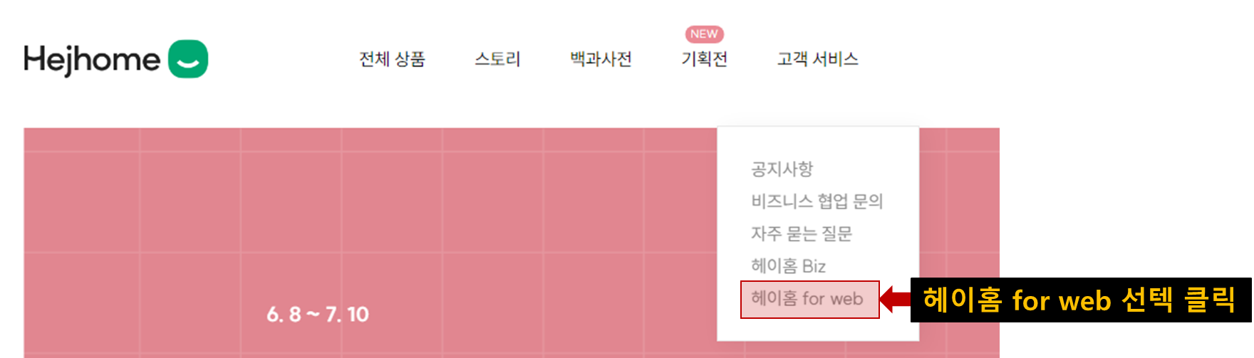 1. 헤이 홈 메인 홈페이지에 접속 한다.