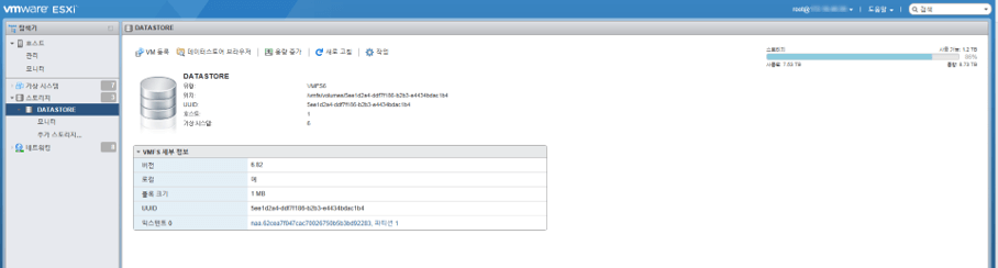3. VMware-ESXi 접속 후 가상 서버 스토리지 화면